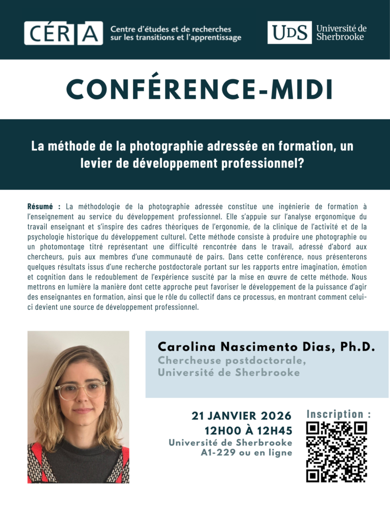 La soutenance de thèse d’Isabelle Rioux auxiliaire de recherche au CÉRTA aura lieu le mardi 23 septembre 2025 à 13h30 au A1-229 (Université de Sherbrooke) ou par TEAMS.