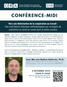 Conférence-midi | Vers une théorisation de la coopération au travail : Une contribution théorique-méthodologique aux stratégies de prévention en santé au travail dans le milieu scolaire